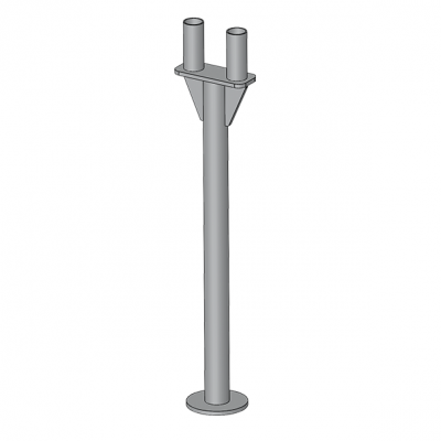 Pied chandelle 2 pieds Tube aluminium de 60 x 30 mm Avec platine et 2 pieds de 50 x 3 mm